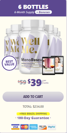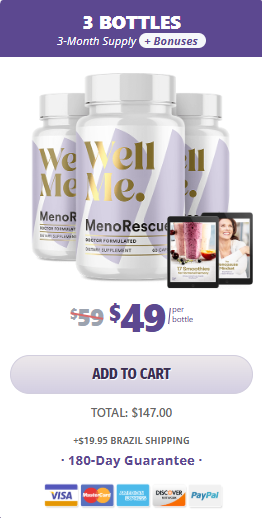 Menorescue is more than just a supplement — it’s a complete and scientifically formulated solution designed to relieve the harshest effects of menopause. Developed by WellMe, it was created especially for women who are tired of feeling like they’ve lost control of their bodies: intense hot flashes, sleepless nights, unexplained weight gain, constant irritability, and that heartbreaking feeling that your best self is in the past.