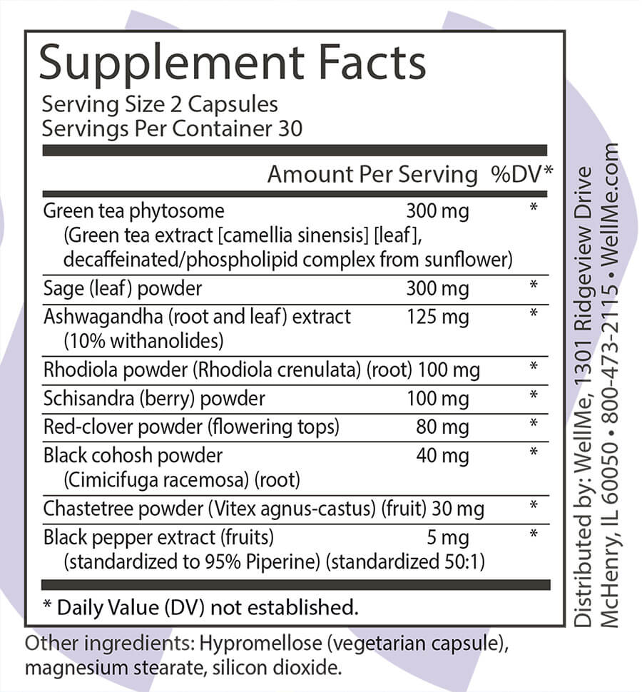 Once cortisol is under control, the body becomes ready to gently restore the natural production of estrogen and progesterone. This second blend includes natural phytoestrogens — plant-based compounds that mimic estrogen in the body — along with other clinically researched herbs and botanicals that support healthy progesterone levels without shocking the body.